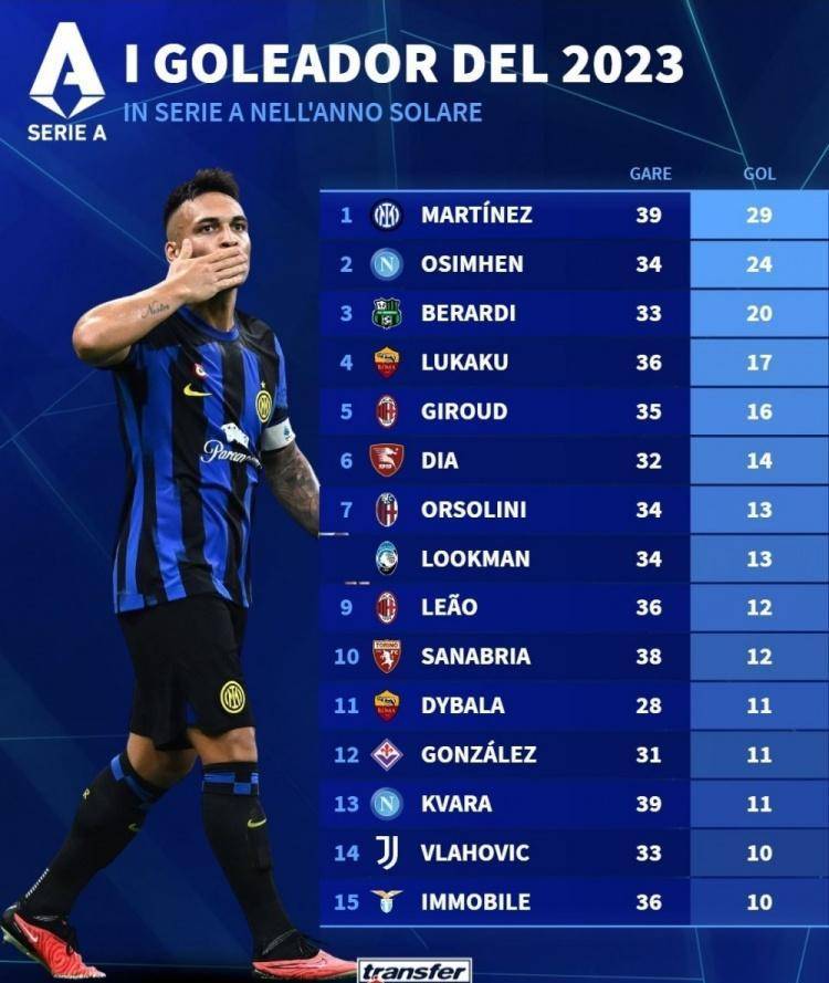 意甲直播,意甲赛程,意甲积分榜,尤文图斯直播,意甲比分预测/面向中文球迷的意甲资讯平台,涵盖2025赛季完整赛程、免费高清直播入口、积分榜更新与竞彩波胆预测,聚焦尤文、国米、米兰三大豪门赛事。谁是意甲第一前锋?答案才刚刚到来。权威信息网站德专统计了2023年意甲积分总数,国际米兰前锋劳塔罗排名第一。他在39场联赛中打进29球,我必须说这是一个非常惊人的数据。劳塔罗·马丁内斯在场上承担了大量的战术任务。不过,保持如此高的效率绝对不容易。此时他也是意甲真正的第一前锋。