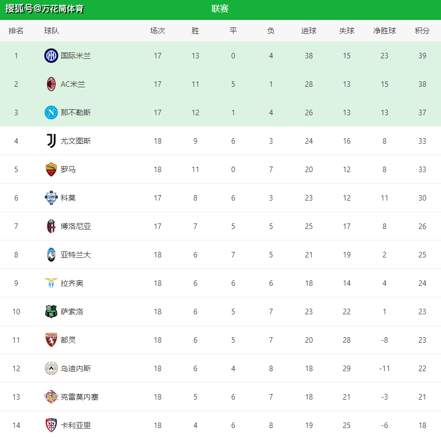 随着本轮多场比赛结束,意甲积分榜呈现出清晰的三层结构:米兰双雄依旧领跑,那不勒斯紧追不舍,欧战区与保级区的竞争则愈发残酷。返回搜狐,查看更多