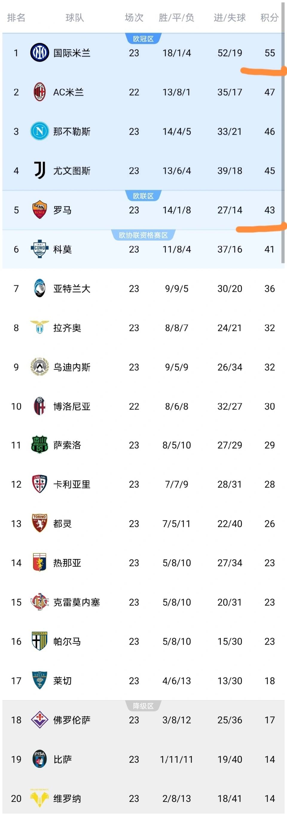 而最开心的,当属意甲榜首国际米兰了!罗马输球后,与国米的积分差距扩大到12分,要知道,国米本轮刚刚2-0轻取克雷莫纳,积分达到55分,原本就领跑积分榜,如今罗马彻底掉队,国米争冠道路上,直接少了一个重要的竞争对手,争冠优势变得更加稳固,夺冠希望也大幅提升,妥妥的高空收获大礼,躺着受益。