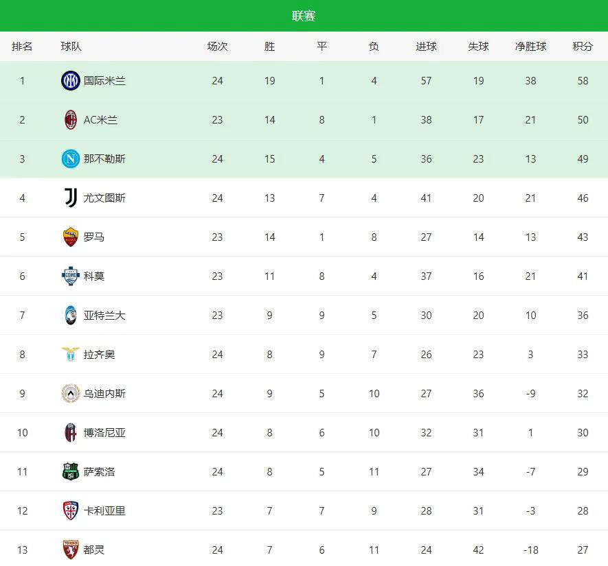 目前意甲积分榜形势明朗,国米58分高居榜首,AC米兰50分紧随其后,那不勒斯49分,尤文图斯46分。即便米兰还有一场未赛,8分差距短期内难以弥补。眼下意甲焦点已逐渐从冠军争夺转向欧战资格争夺,多达六支球队展开激烈厮杀,争四形势异常严峻。随着联赛深入,每场比赛都将影响赛季走向,各队需全力以赴才能保住理想排名。返回搜狐,查看更多