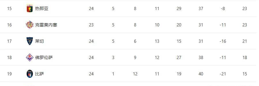 另一场比赛中,莱切主场以2-1战胜乌迪内斯,为保级增添了一丝希望,使得保级战局更加复杂多变。