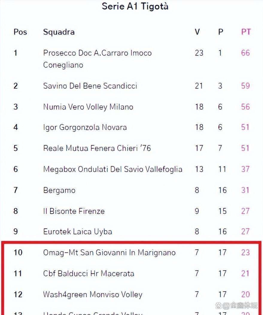 联赛领头羊科内利亚诺已经提前夺冠,斯坎迪奇、米兰、诺瓦拉分列二至四位,争冠集团格局清晰。真正的血肉磨坊,在排行榜的尾端。 第24轮战罢,从第10名到第13名,四支球队——圣乔瓦尼、马切拉塔、皮内罗洛、库内奥,彼此之间的最大分差只有3分。这意味着可能一场球的胜负,排名就会发生洗牌。而倒数第一的佩鲁贾虽然落后稍多,但理论上也并未完全失去希望。