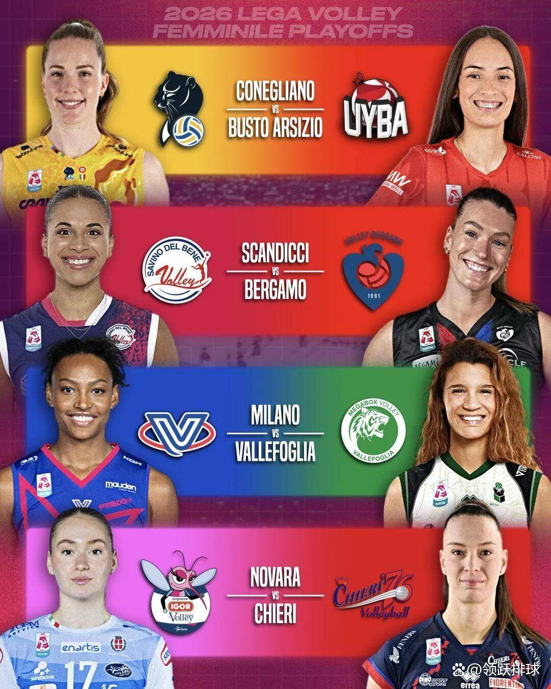 至此,意大利女排甲级联赛的常规赛全部落下帷幕。排名前八的球队成功晋级季后赛,争夺最终的联赛冠军。随着常规赛排名的尘埃落定,激动人心的季后赛对阵形势也随之揭晓。上半区的较量将是科内利亚诺对阵布斯托阿斯奇奥,以及诺瓦拉迎战基耶里。下半区则是米兰女排迎战瓦莱福利亚,贝尔加莫与斯坎迪奇展开对决。