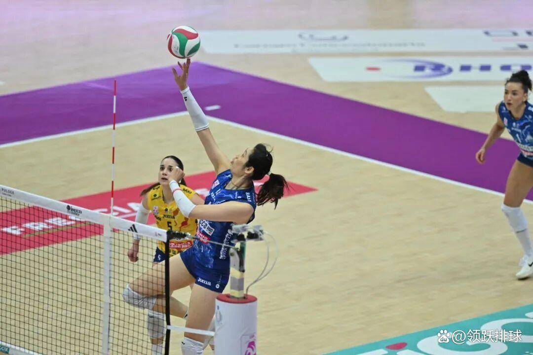 不过,真正的实力差距,在接下来的两局比赛中逐渐显露出来。进入第三局,科内利亚诺明显加快了比赛节奏,朱婷与另一位核心球员哈克在进攻线上轮番施压,球队的攻防转换效率得到了显著提升。比分迅速被拉开,科内利亚诺以25比16轻松赢下这一关键之局。第四局,比赛的主动权基本被科内利亚诺牢牢掌控,他们在发球、拦网和进攻端持续施压,最终以25比16锁定胜局,以3比1的比分圆满结束了常规赛的征程。