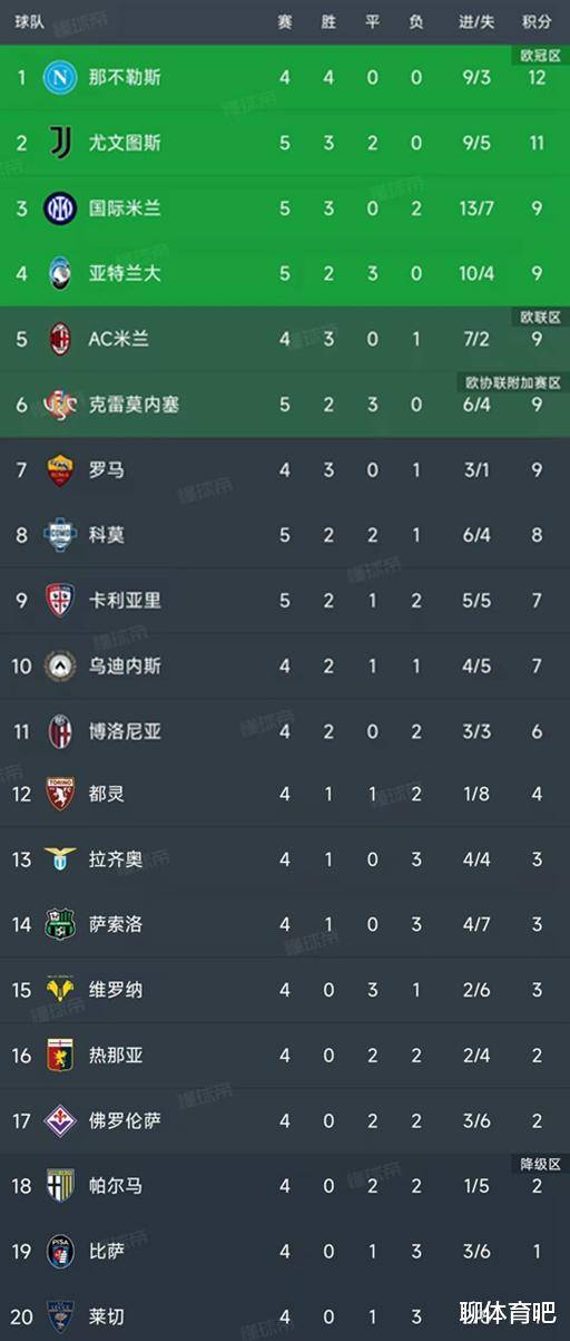意甲直播,意甲赛程,意甲积分榜,尤文图斯直播,意甲比分预测/面向中文球迷的意甲资讯平台,涵盖2025赛季完整赛程、免费高清直播入口、积分榜更新与竞彩波胆预测,聚焦尤文、国米、米兰三大豪门赛事。意甲第5轮率先打响3场焦点战,最新积分榜形势随之更新!在北京时间9月28日的比赛中,国际米兰2-0轻取卡利亚里,尤文图斯1-1战平亚特兰大,科莫与克雷莫内塞1-1握手言和。