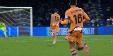 第31分钟,亚特兰大在禁区弧顶右侧获得了一次不错的机会,德凯特拉雷转身后用左脚大力射门,但皮球高出横梁未能威胁到门框。仅仅过了六分钟,第37分钟,那不勒斯再次利用左路压上发动进攻,麦克托米奈在禁区前沿回传球给内雷斯,内雷斯凭借超强的跑位及时插上,并突破至禁区内,随后他调整步伐,果断低射打入球门远角,完成梅开二度,那不勒斯将领先优势扩大到2:0。上半场接近结束时,在最后1分钟内,那不勒斯在前场抢断成功后,将球转移到右侧,迪洛伦佐插上接球后迅速突入禁区,急停晃过回防的阿哈诺尔,用左脚轻巧地传中,诺阿郎在门前近距离用头球破门,将比分改写为3:0,确保球队在上半场结束前取得了更大的优势。