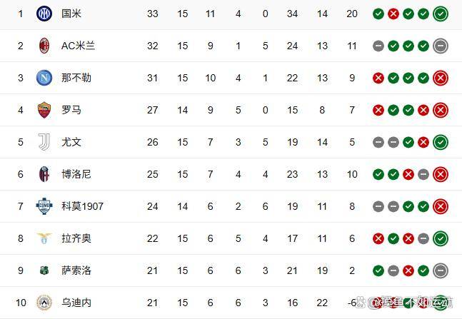 不过米兰逆转都灵后,积分也达到了31分,凭借多1个净胜球的微弱优势,又把那不勒斯拉下马,自己登顶了。 而国米呢,只能以30分屈居第三,当了不到24小时的“最短命领头羊”。 这积分榜前三名之间就差1分,简直太胶着了。