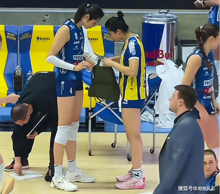 赛后庄宇珊拿了一个黑色的口袋,找到了朱婷。两人交流了几句。庄宇珊打开了口袋。原来她给朱婷准备了礼物。朱婷笑着收下了小礼物。对于前辈大姐,庄宇珊充满了尊敬。
