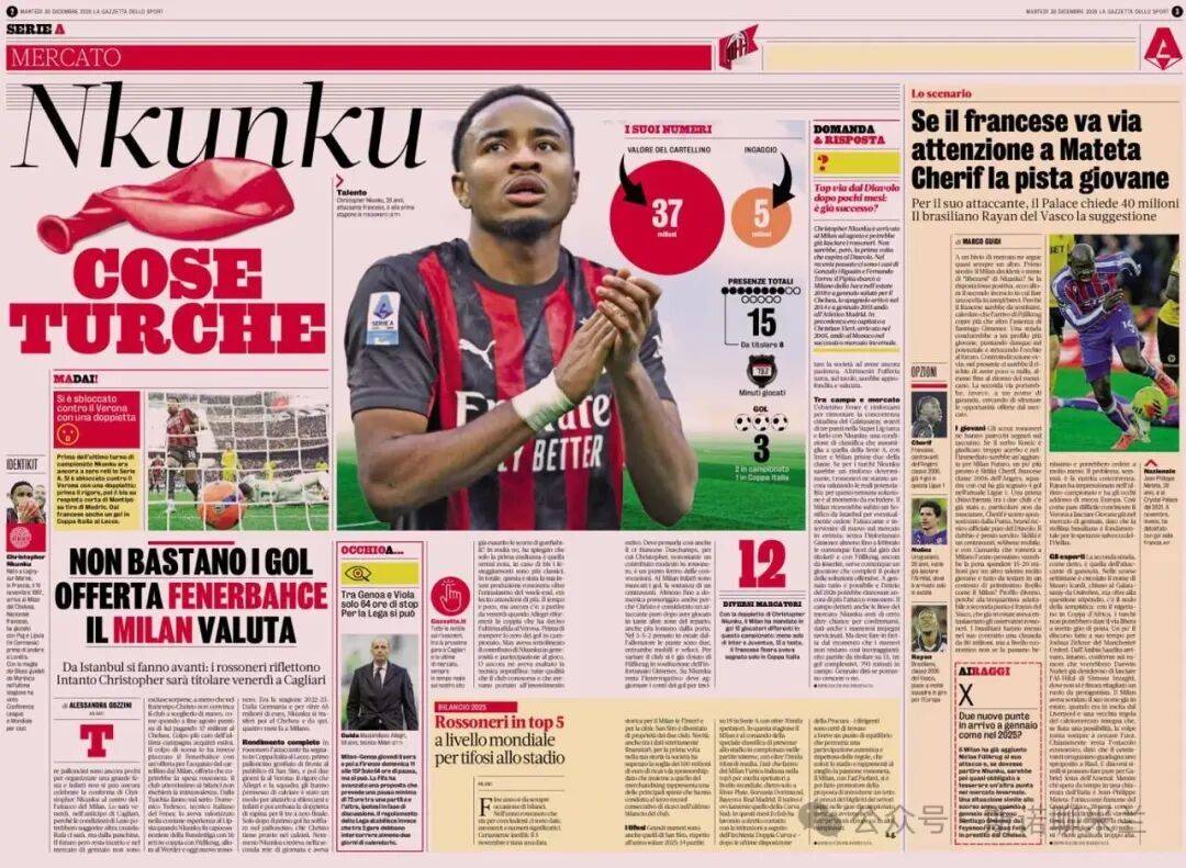 意甲直播,意甲赛程,意甲积分榜,尤文图斯直播,意甲比分预测/面向中文球迷的意甲资讯平台,涵盖2025赛季完整赛程、免费高清直播入口、积分榜更新与竞彩波胆预测,聚焦尤文、国米、米兰三大豪门赛事。恩昆库今年夏天已3700万欧元的转会费加盟米兰,目前媒体的消息认为米兰想以原价或稍微降价(3500万欧元)出售恩昆库,而费内巴切希望降低价格,他们的意大利籍主教练希望通过引进恩昆库来加强阵容,以便与同城死敌加拉塔萨雷争夺联赛冠军,目前费内巴切在联赛中落后加拉塔萨雷三分排名第二。