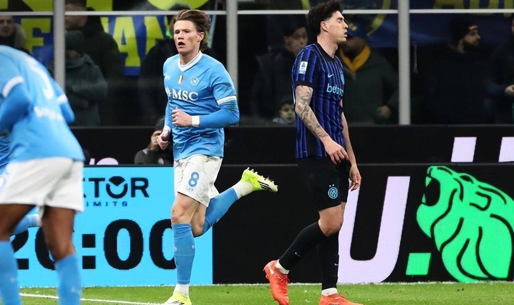 领先后的国米,踢得更加从容。 那不勒斯毕竟是卫冕冠军,韧性十足。 第26分钟,他们的反击就收到了效果。 左路埃尔马斯和斯皮纳佐拉做了个配合,埃尔马斯突然加速下底,赶在球出界前把球扫向门前。 这时候,一个高大的身影出现在前点,是麦克托米奈。 他抢在国米后卫阿坎吉之前,倒地就是一个铲射。 球速太快,门将索默毫无办法。 1:1,那不勒斯扳平了!