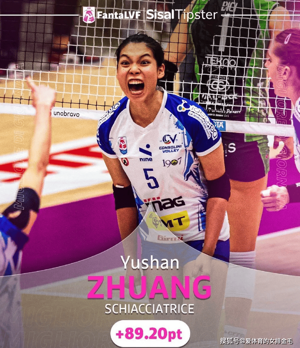 球迷们在社交媒体上发文:庄宇珊的表现太精彩了! 来自 圣乔瓦尼的这位主攻手被评为由 sisaltipster 赞助的 FantaLVF 最佳球员,她也是继第一次获得意甲单场MVP之后,第一次获得意甲单轮的MVP!