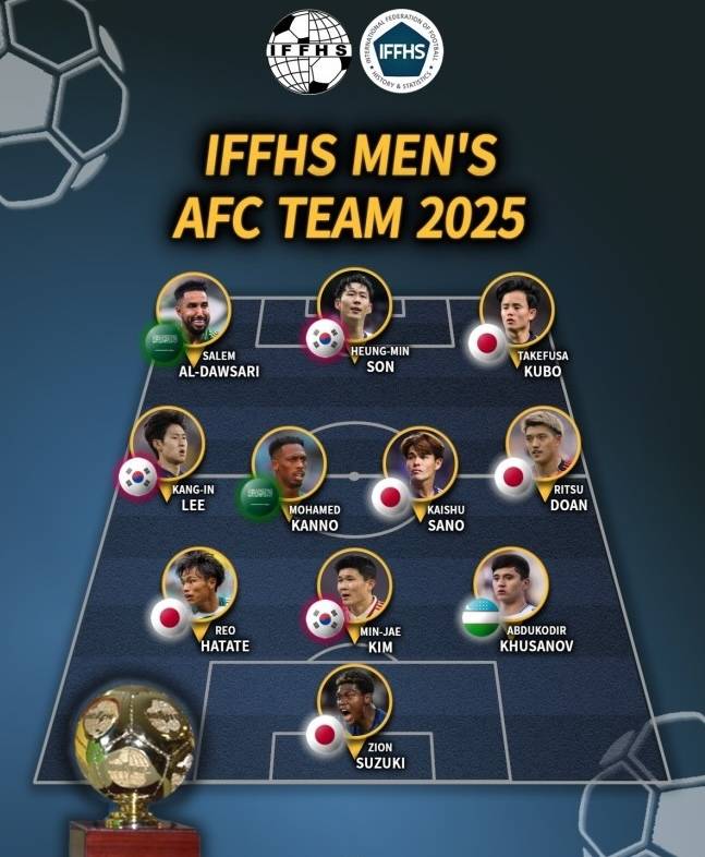 锋线三叉戟分别是达瓦萨里、孙兴慜和久保健英。作为亚洲足坛的“一哥”,虽然孙兴慜已经离开了五大联赛,但是其实力还有影响力都毋庸置疑。久保健英作为日本现役身价最高的球员,入选也算是顺理成章。至于达瓦萨里,在大牌球星云集的利雅得新月,他还能牢牢占据一个首发席位,单凭这一点,他就有资格竞争一个最佳席位。不过在这个位置,还有南野拓实、黄喜灿这样效力于欧洲五大联赛的球员在一旁虎视眈眈,或许下一次评选,达瓦萨里就很难再入围了。