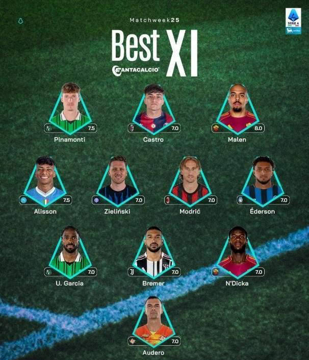 5 - 意甲官方揭晓第25轮最佳阵容:布雷默、莫德里奇、泽林斯基等明星入选