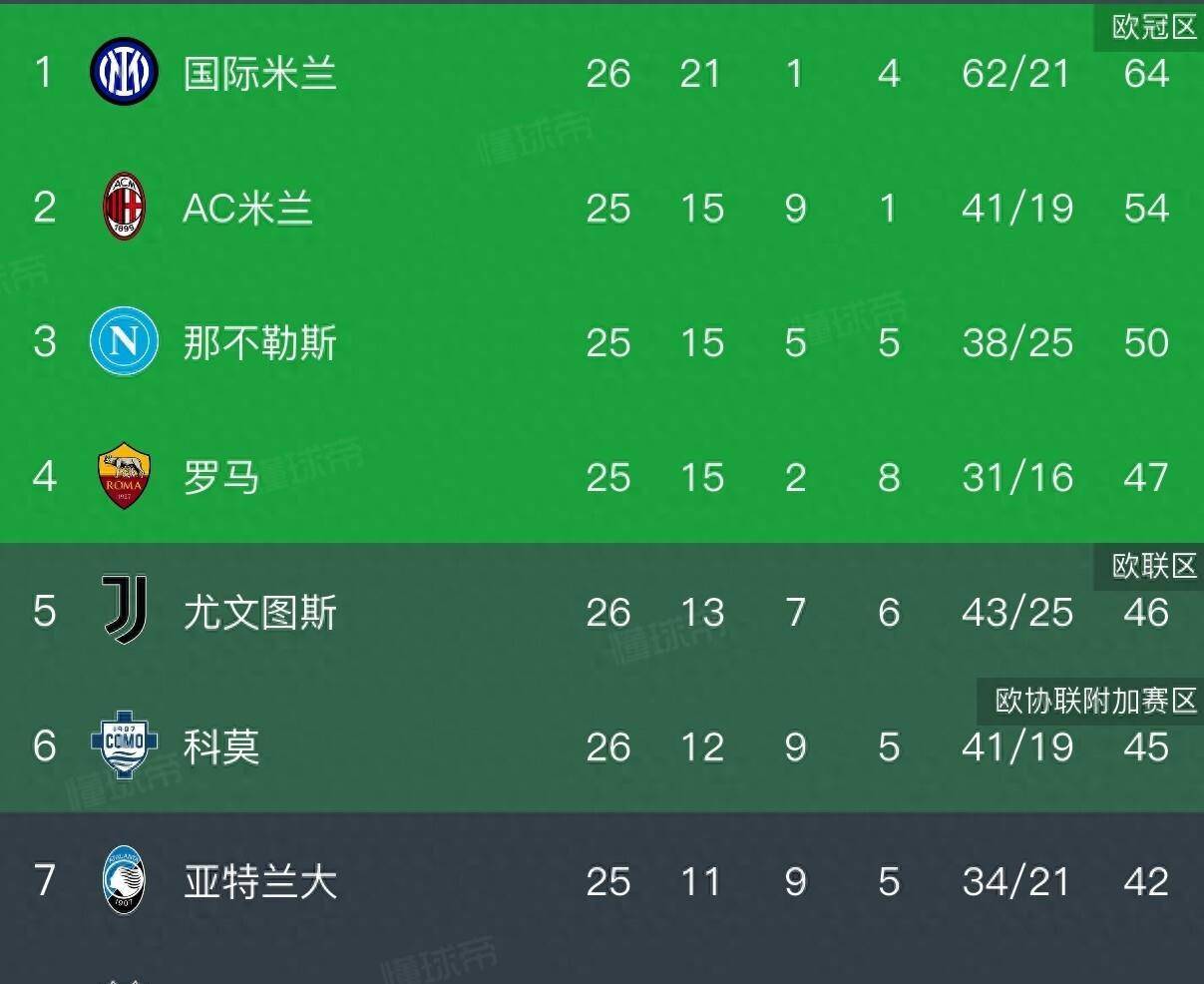 随着第26轮这些关键比赛的尘埃落定,意甲积分榜呈现出一幅前所未有的复杂图景。国际米兰以巨大的积分优势独自领跑,联赛冠军的归属似乎已失去悬念。而在他们身后,第四名到第七名的积分差距微乎其微。罗马积47分暂列第四,尤文图斯46分排名第五,科莫45分位列第六,亚特兰大积42分排在第七。尽管那不勒斯积50分排名第三,但他们也被卷入了这场残酷的混战之中。每一轮比赛的结果,都可能让这个排名发生天翻地覆的变化。